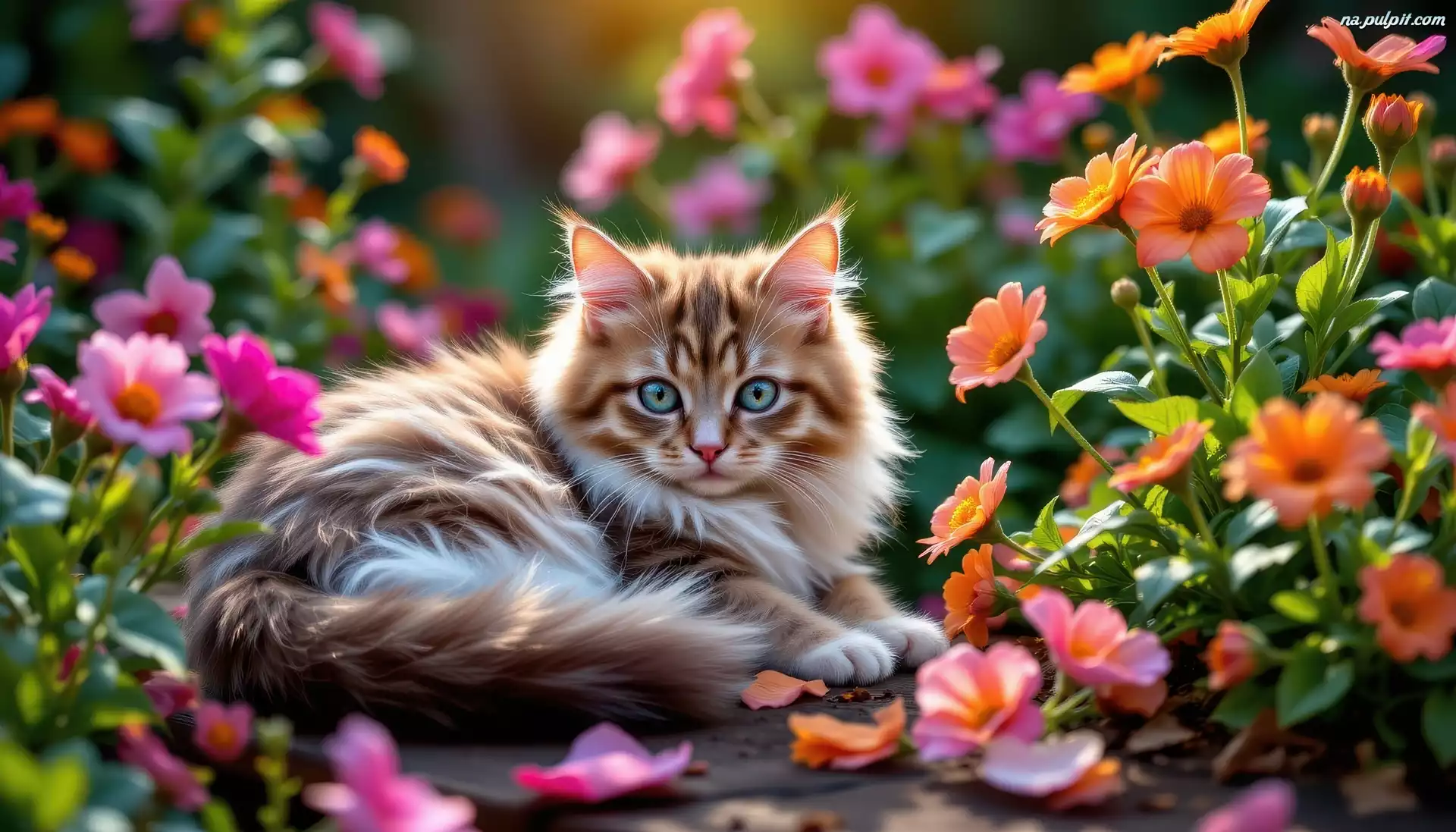 Rudy, Kot, Kwiaty, Grafika AI Na Pulpit