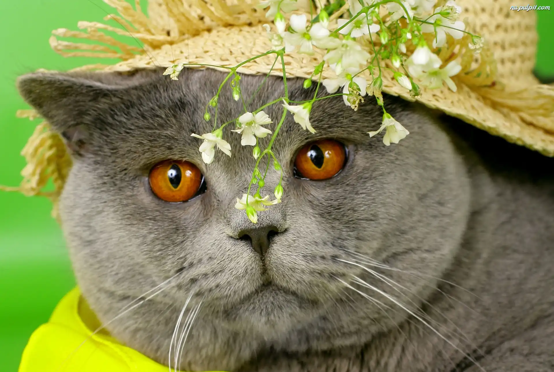 Kwiaty, Kot, Kapelusz Na Pulpit