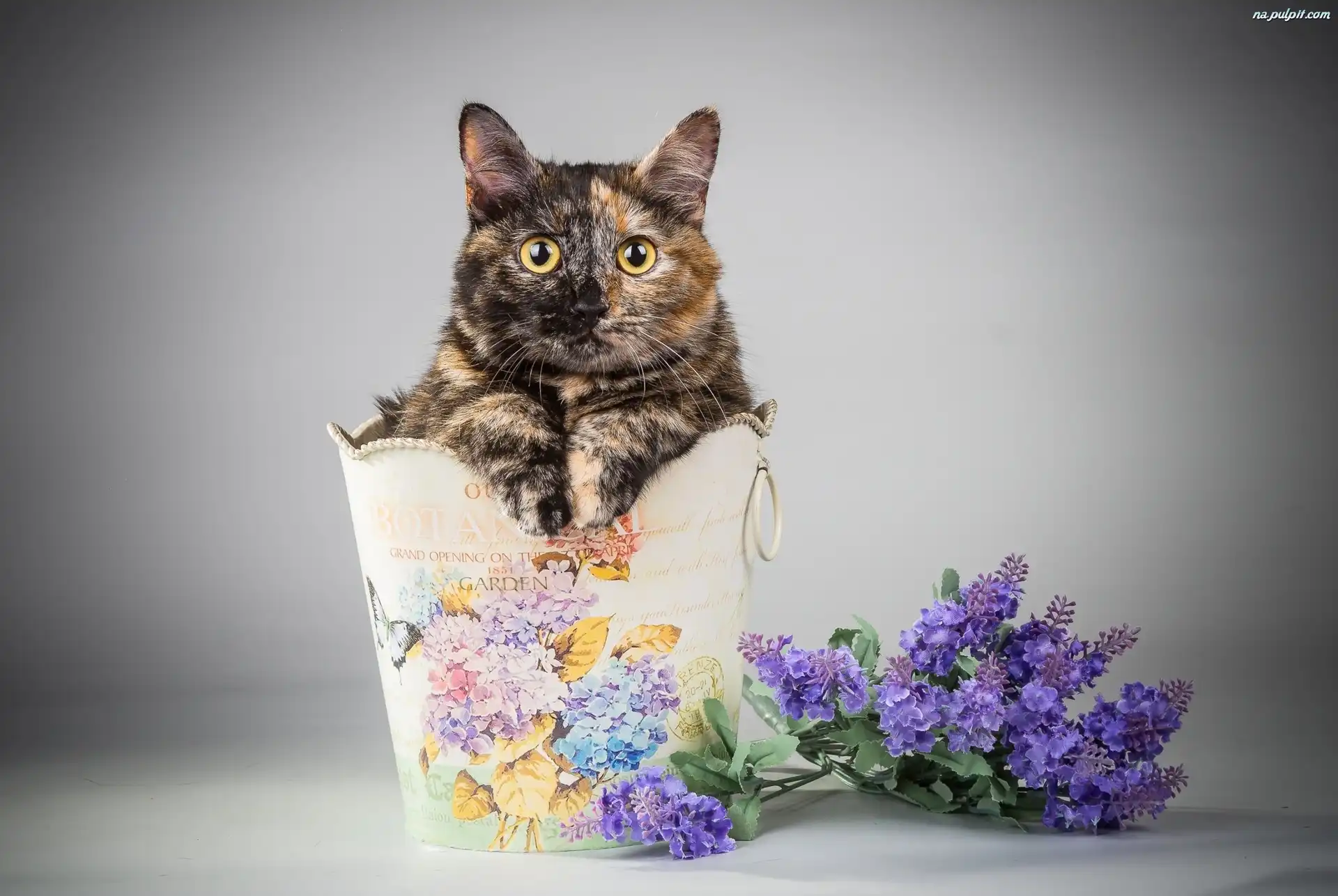 Kwiaty, Kot, Pojemnik Na Pulpit