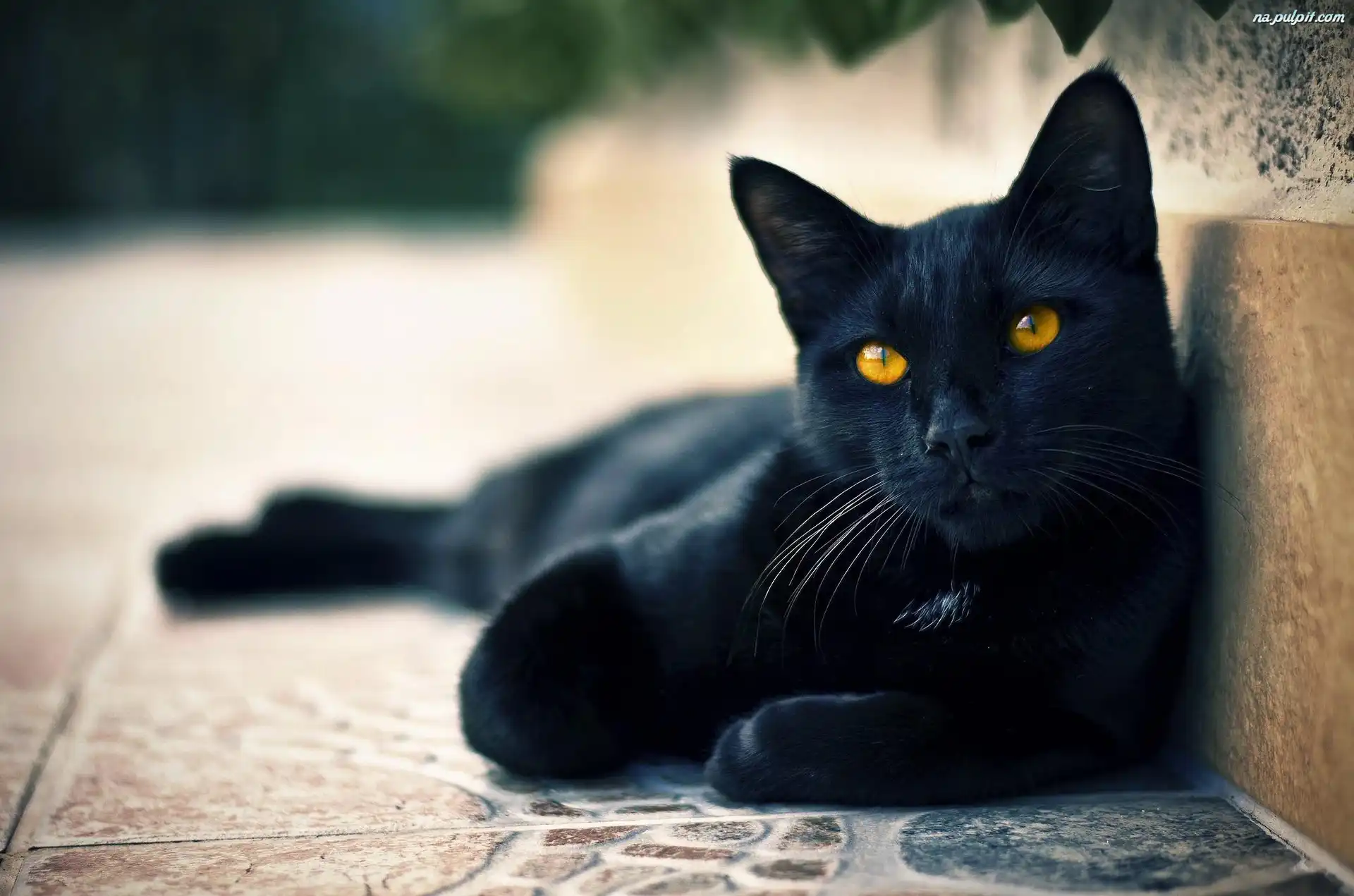 Kot, Oczy, Żółte, Czarny Na Pulpit