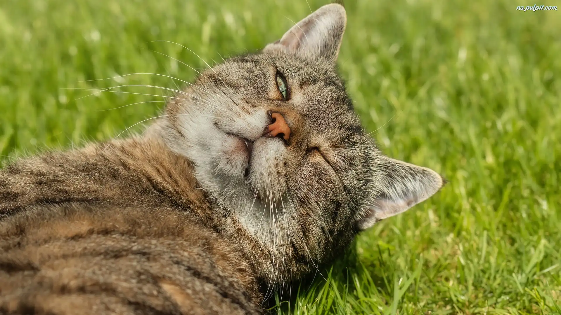 Oko, Szaro-bury, Kot, Trawa, Przymknięte Na Pulpit