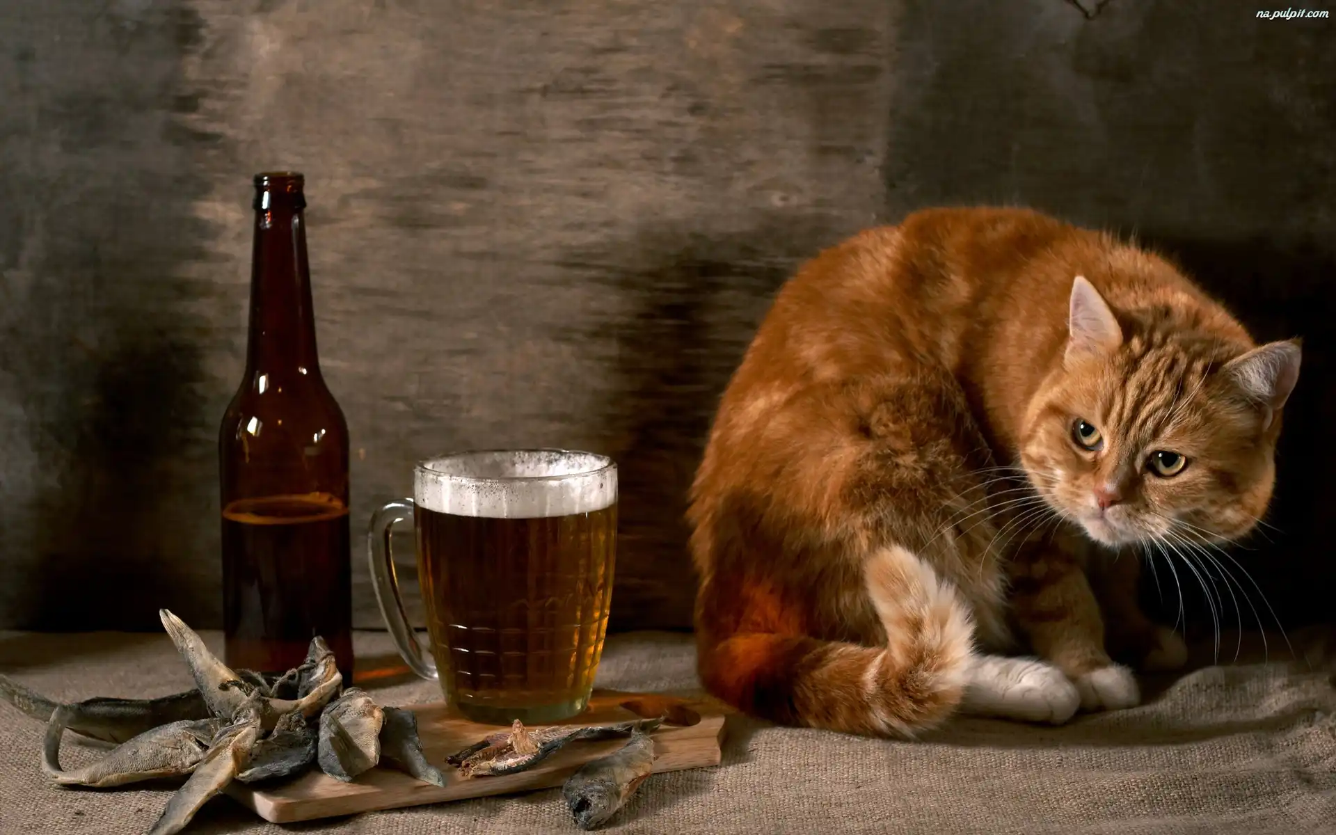 Kot, Suszone, Rybki, Piwo, Rudy, Butelka Na Pulpit