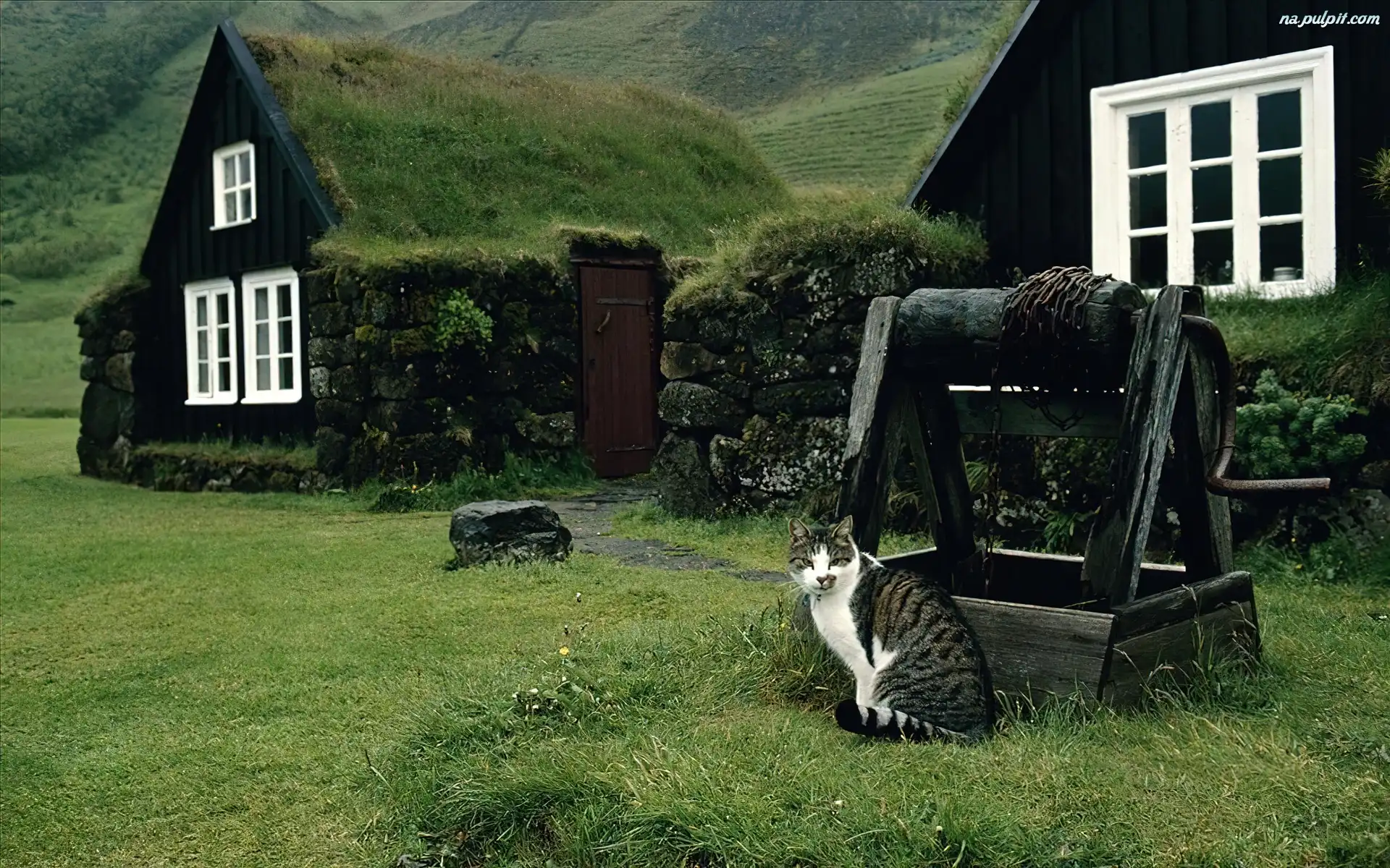 Wiejskie, Domy, Studnia, Kot Na Pulpit