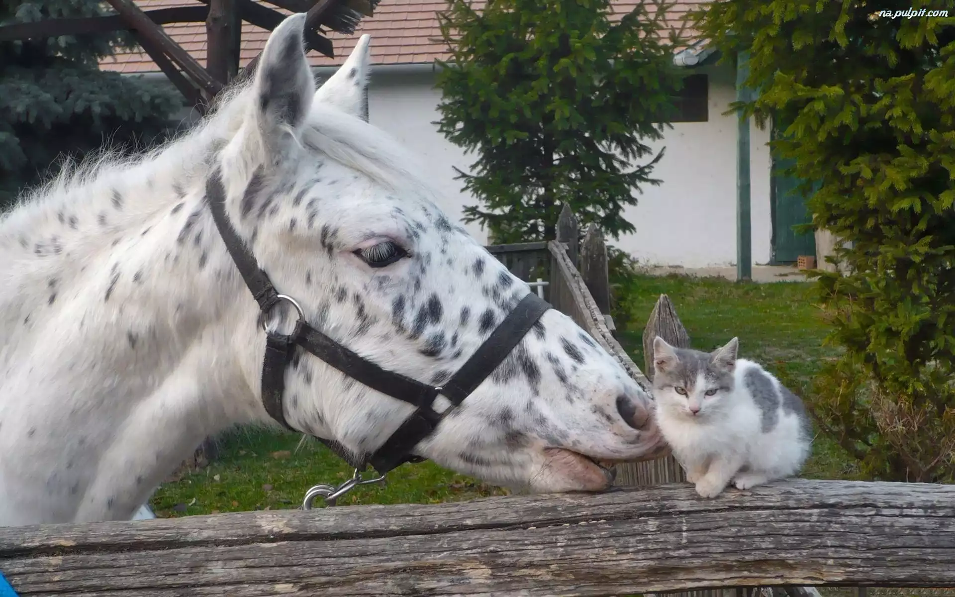 Kotek, Zagroda, Koń, Płot Na Pulpit