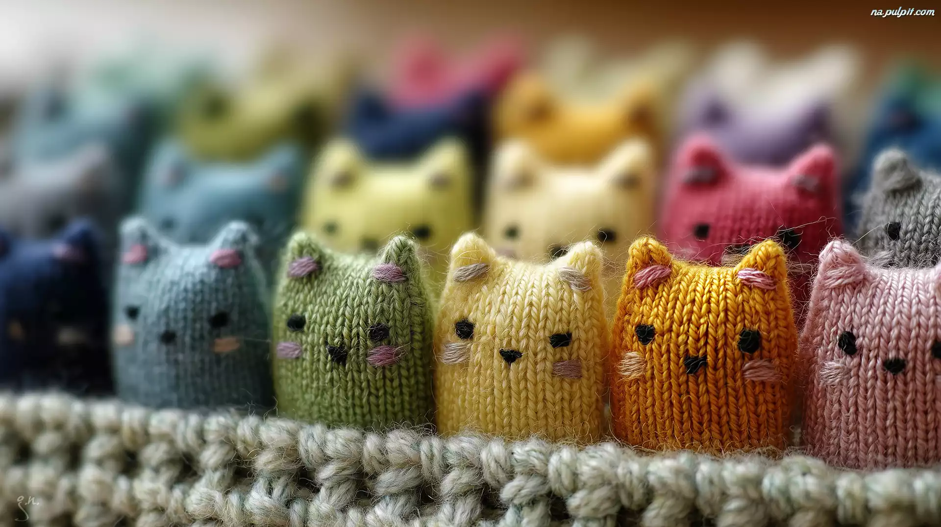 Wełniane, Kotki, Włóczka, Grafika AI Na Pulpit