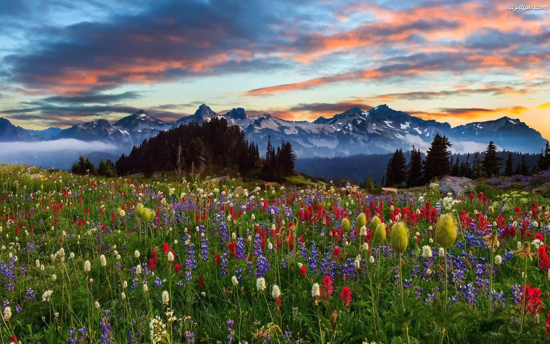 Łąka, Chmury, Góry, Krajobraz, Niebo Na Pulpit