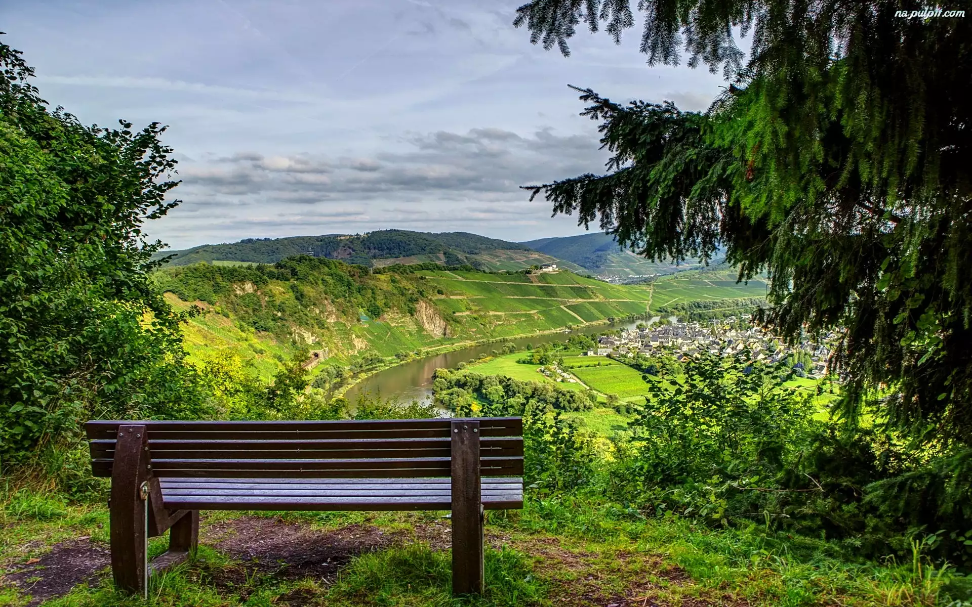 Krajobraz, Rzeka, Góry, Ławka Na Pulpit