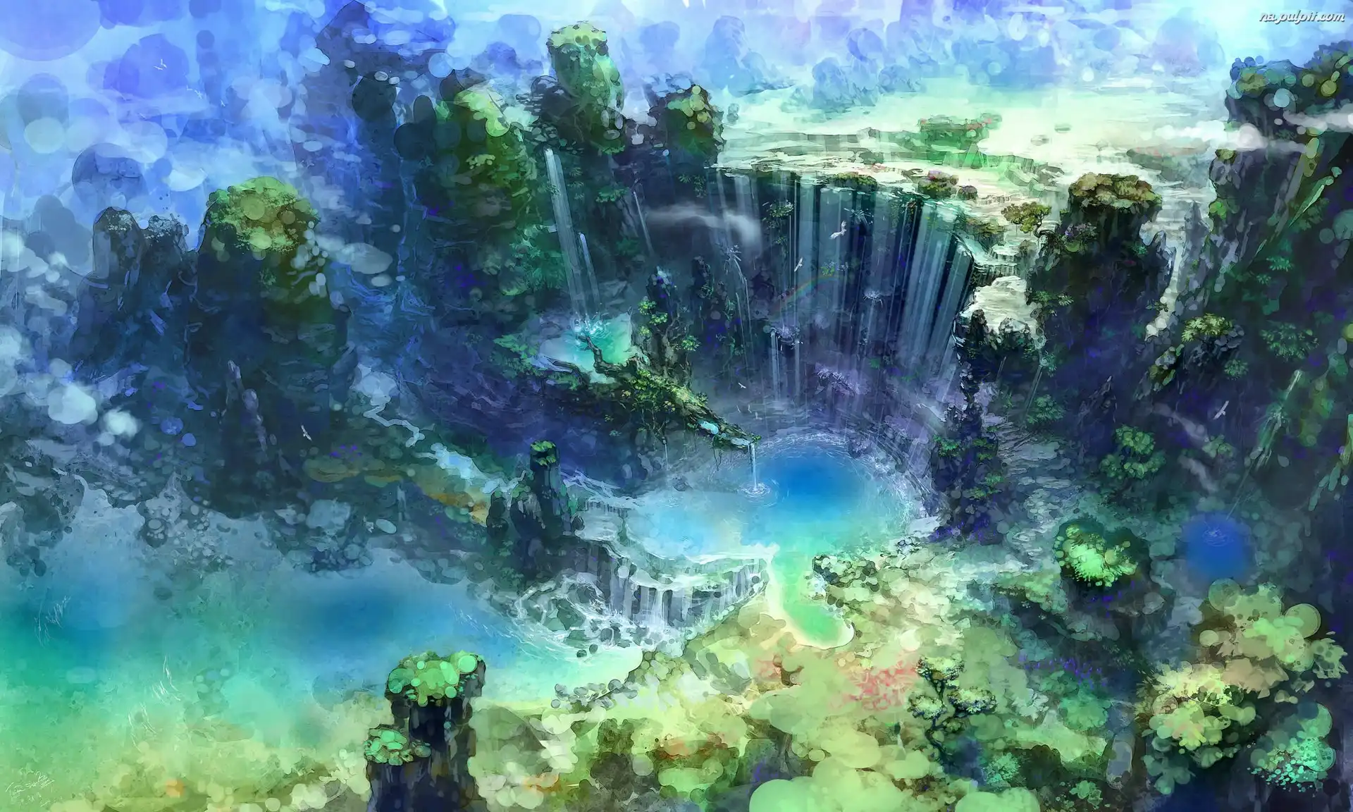 Rysunek, Krajobraz, Wodospad Na Pulpit