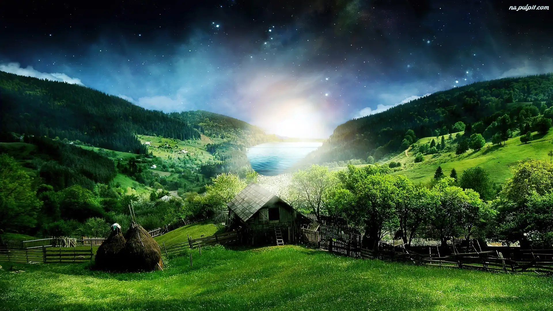 Łąki, Wieś, Fantasy, Krajobraz, Zagroda Na Pulpit