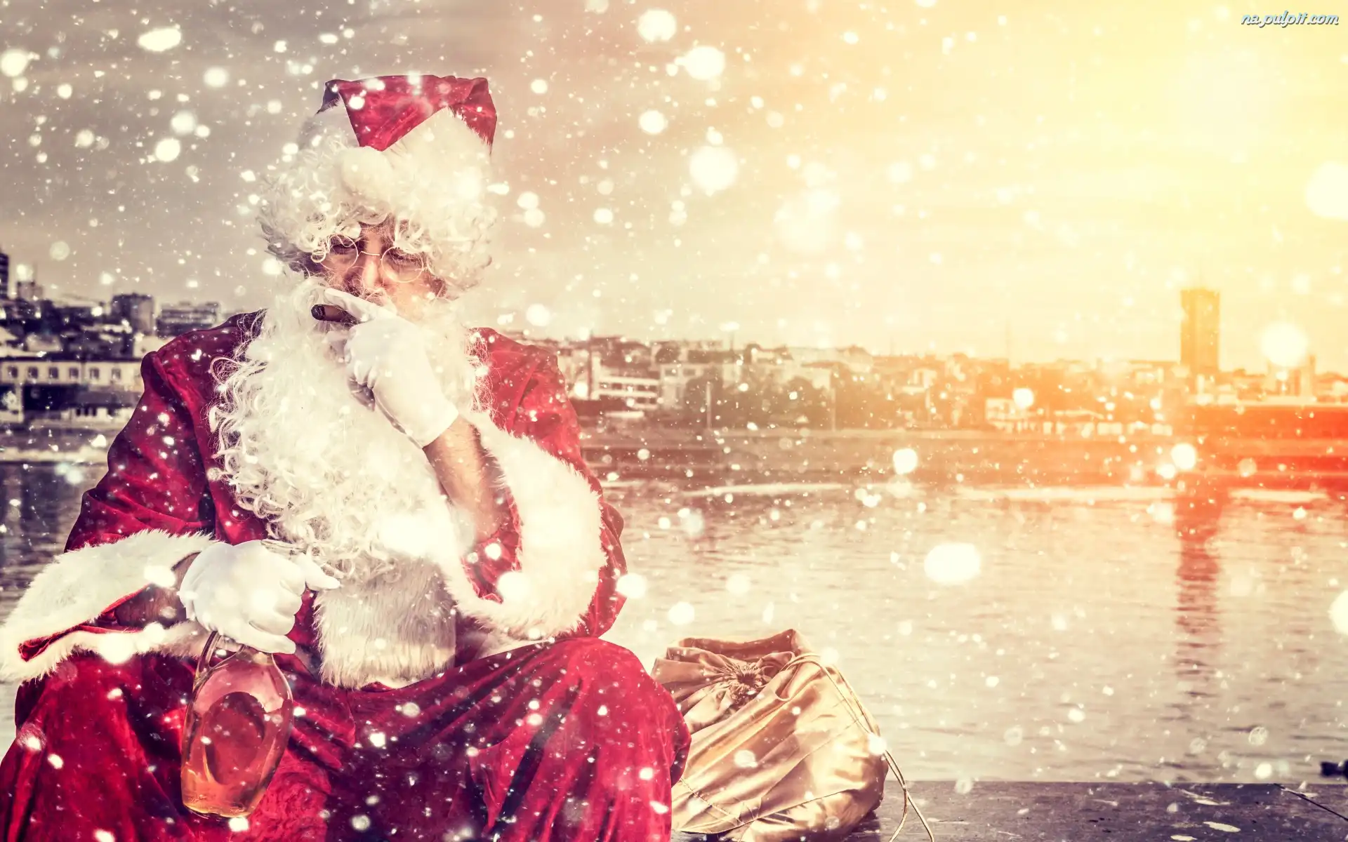 Śnieg, Worek, Mikołaj, Krajobraz, Cygaro