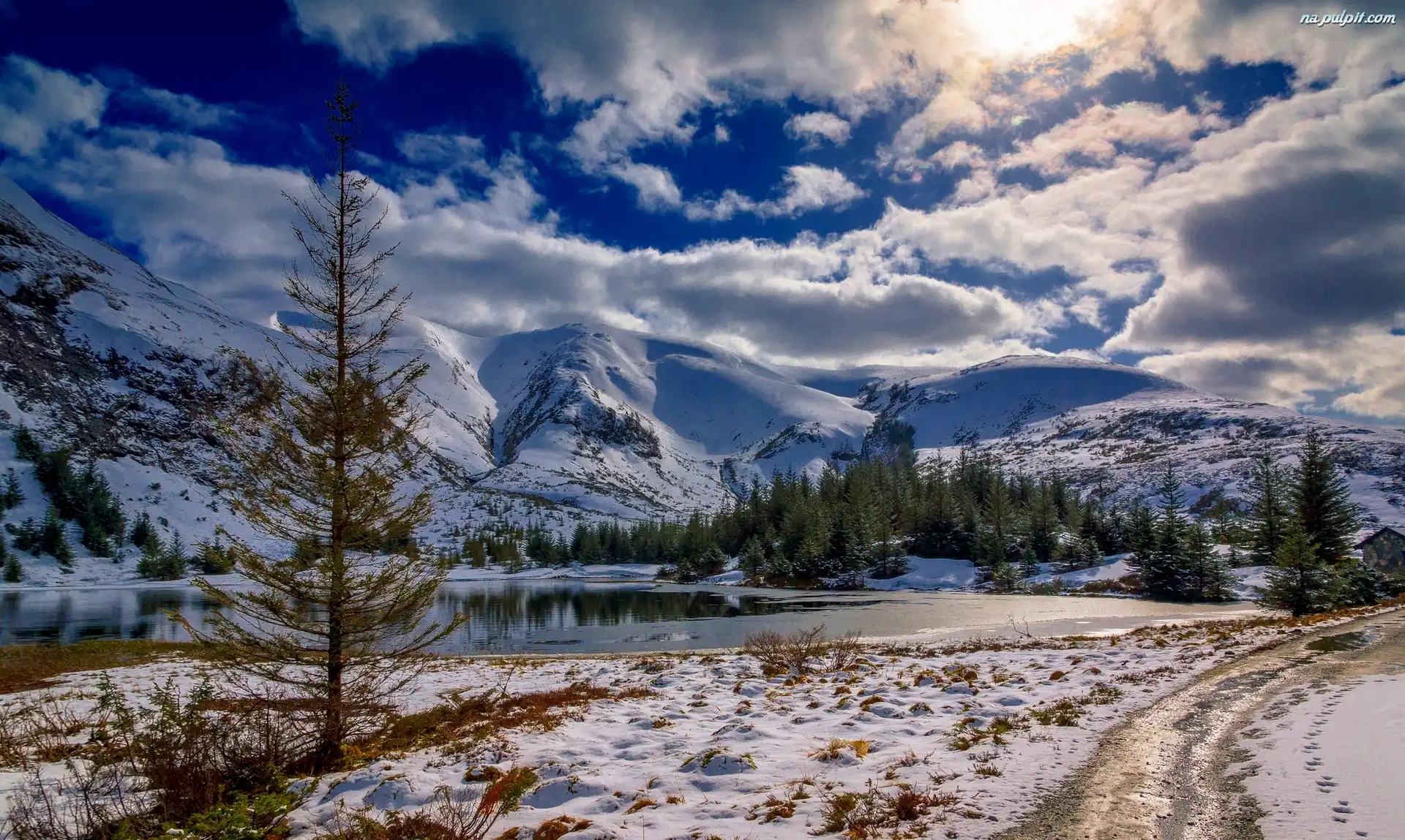 Zimowy, Krajobraz Śnieżna, Drzewa, Pokrywa palmy, Chmura, Góry, Niebo Waleń, Góry Góry, Morze, Laguna Zima, lampa Lato, Góry, Jezioro Góra, Jezioro Zima, Góry Jesień, Góra, Drzewa Gałęzie, Szyszka, Oszronione Las, Bajorko Jezioro, Zachód Słońca Zima, Zwierzęta Wodne