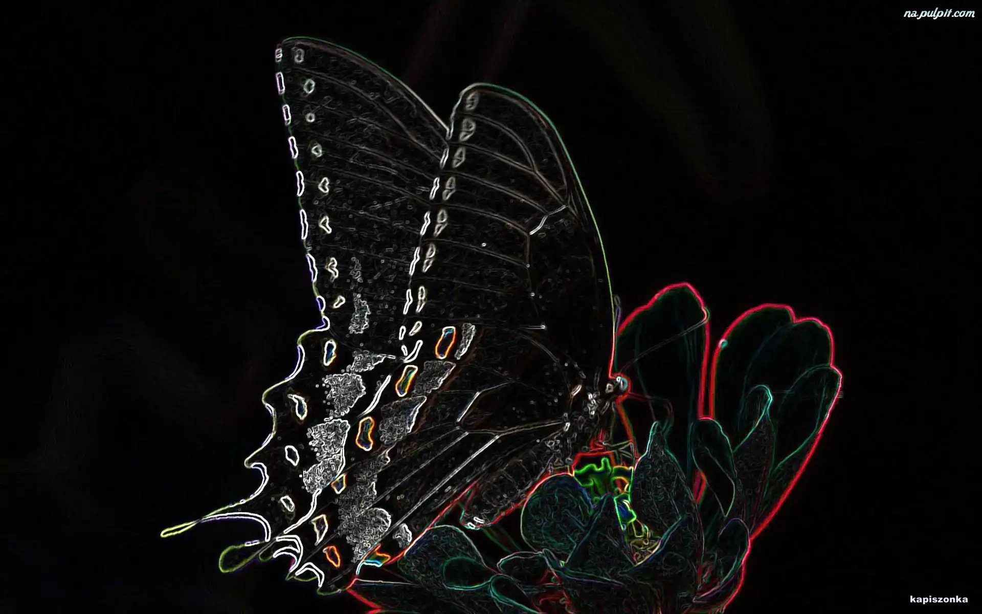 Krawędzie, Kwiat, Motyl, Błyszczące