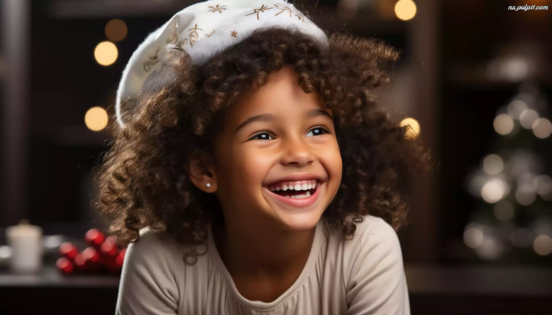 Włosy, Wesoła, Dziewczynka, Kręcone, Uśmiechnięta, Czapka