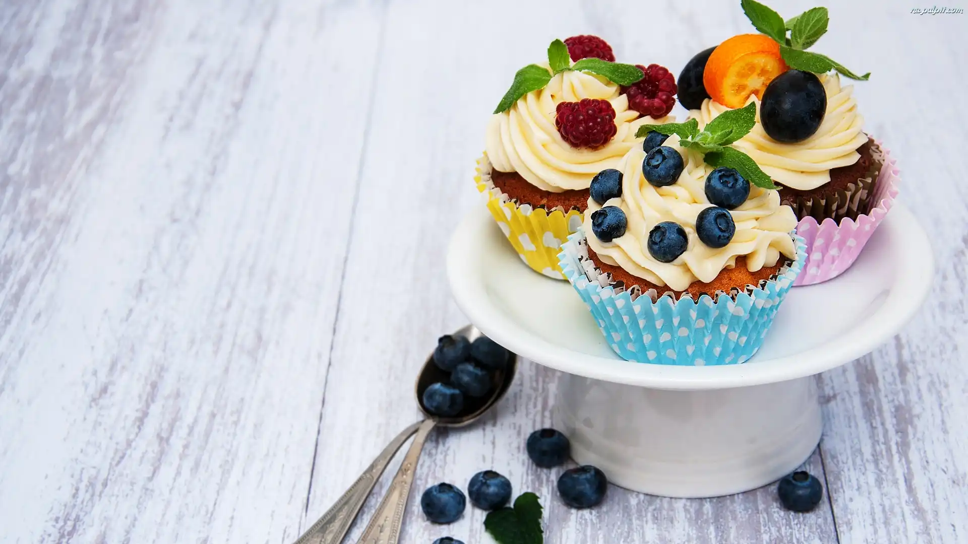 Krem, Mięta, Patera, Jagody, Babeczki, Maliny Na Pulpit