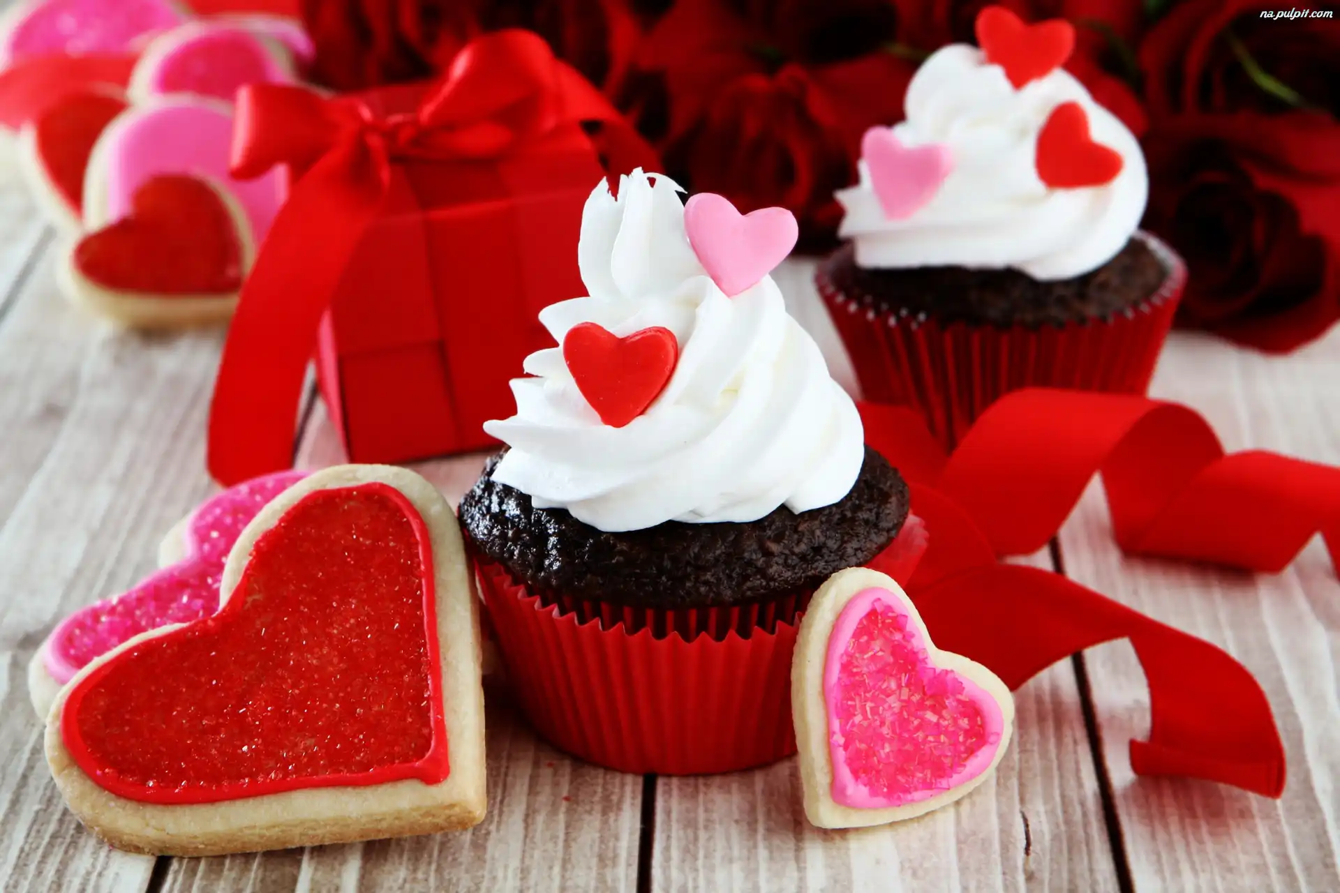 Wstążki, Krem, Ciastka, Walentynki, Miłosne, Serca, Babeczki, Prezent Na Pulpit