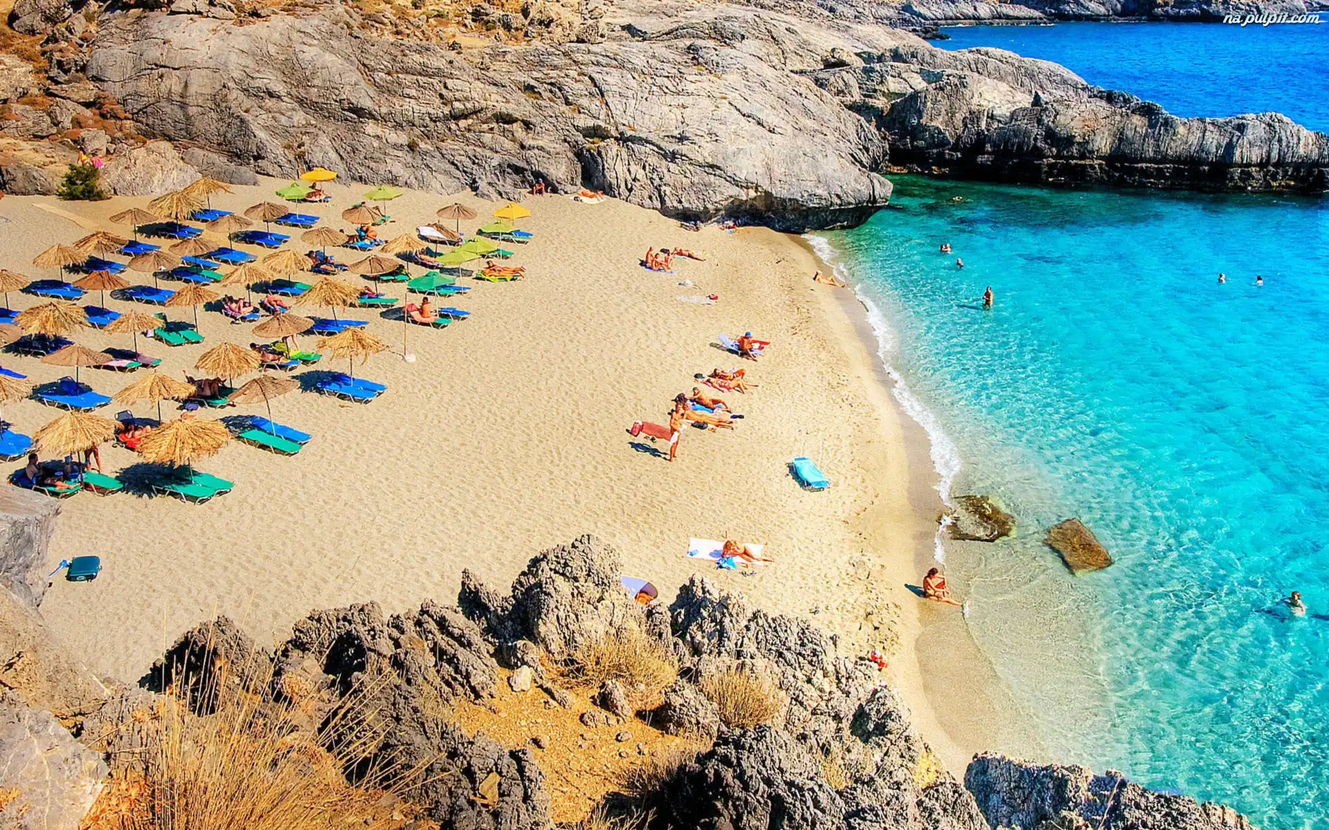 Kreta, Morze, Plaża, Parasole Na Pulpit