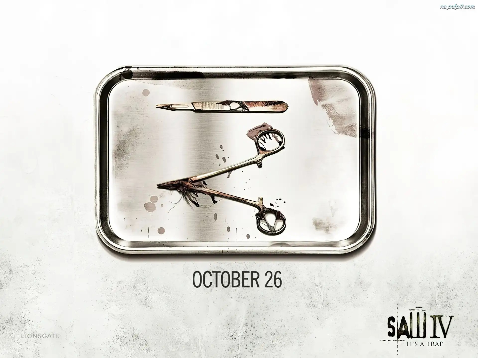 krew, skalpel, Piła 4, nożyczki Na Pulpit