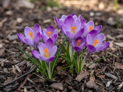 Ziemia, Krokusy, Fioletowe, Kora, Kwiaty