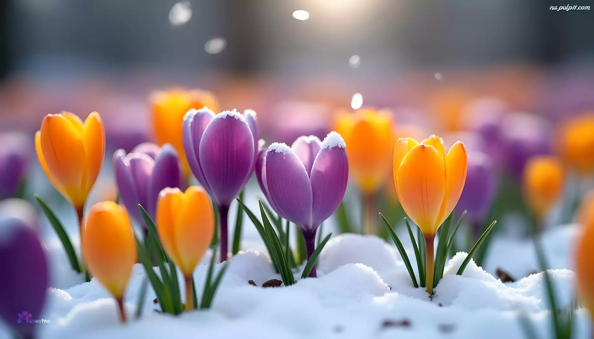 Grafika, Krokusy, Fioletowe, Śnieg, Żółte Na Pulpit