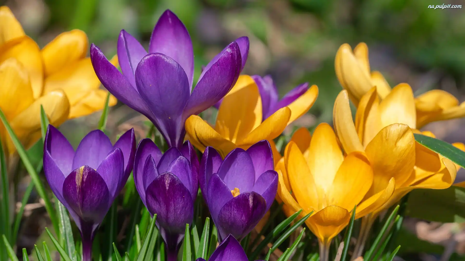 Krokusy, Żółte, Kwiaty, Fioletowe Na Pulpit