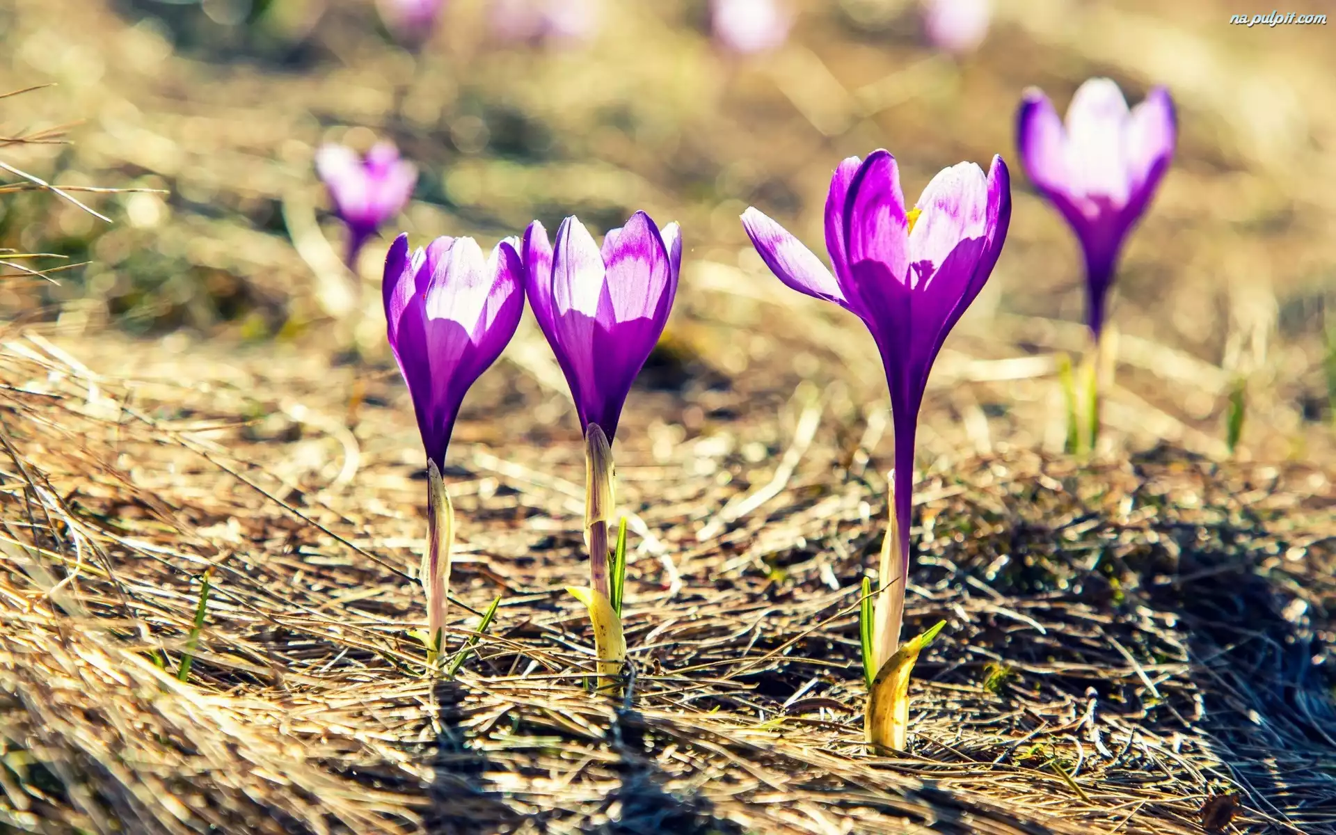 Rozmycie, Krokusy, Słońce Na Pulpit