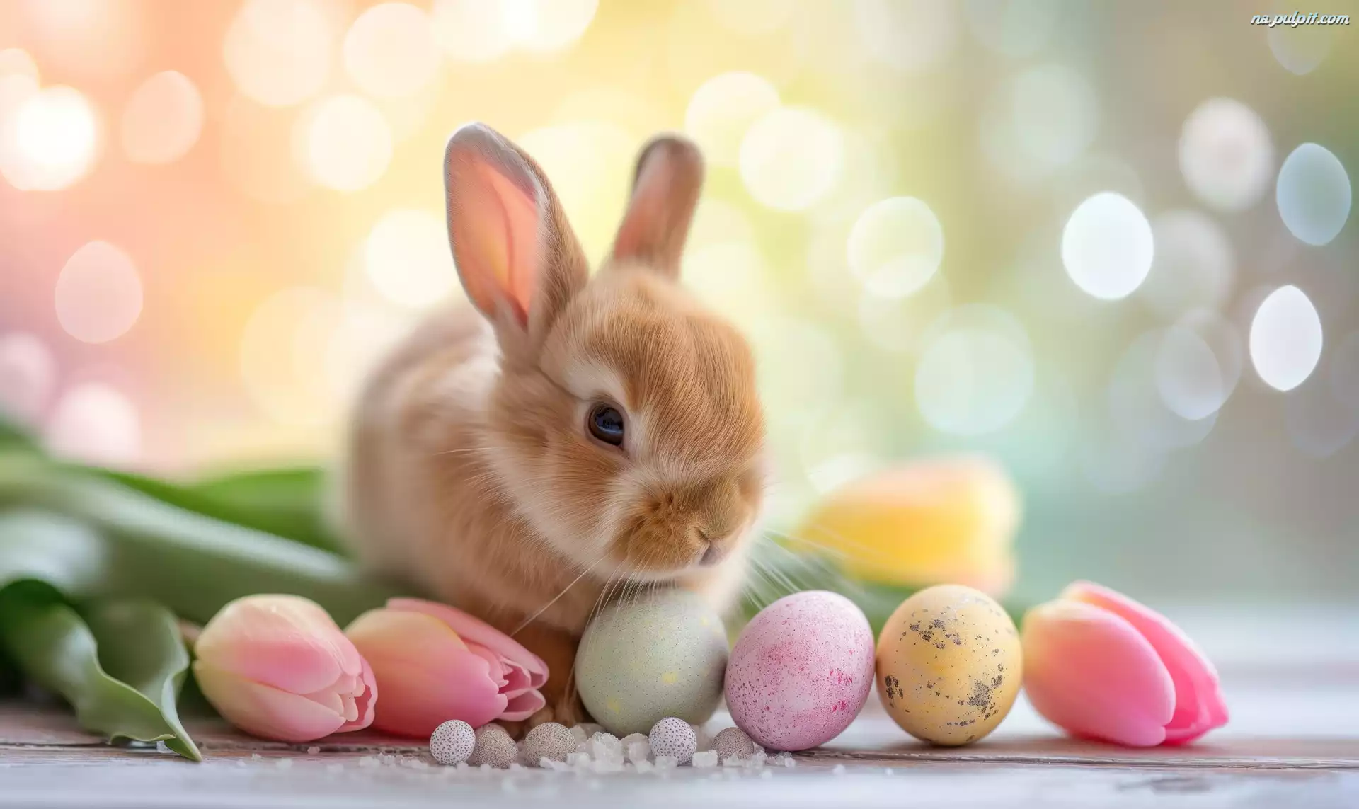 Wielkanoc, Kolorowe, Tulipany, Królik, Pisanki, Grafika Na Pulpit