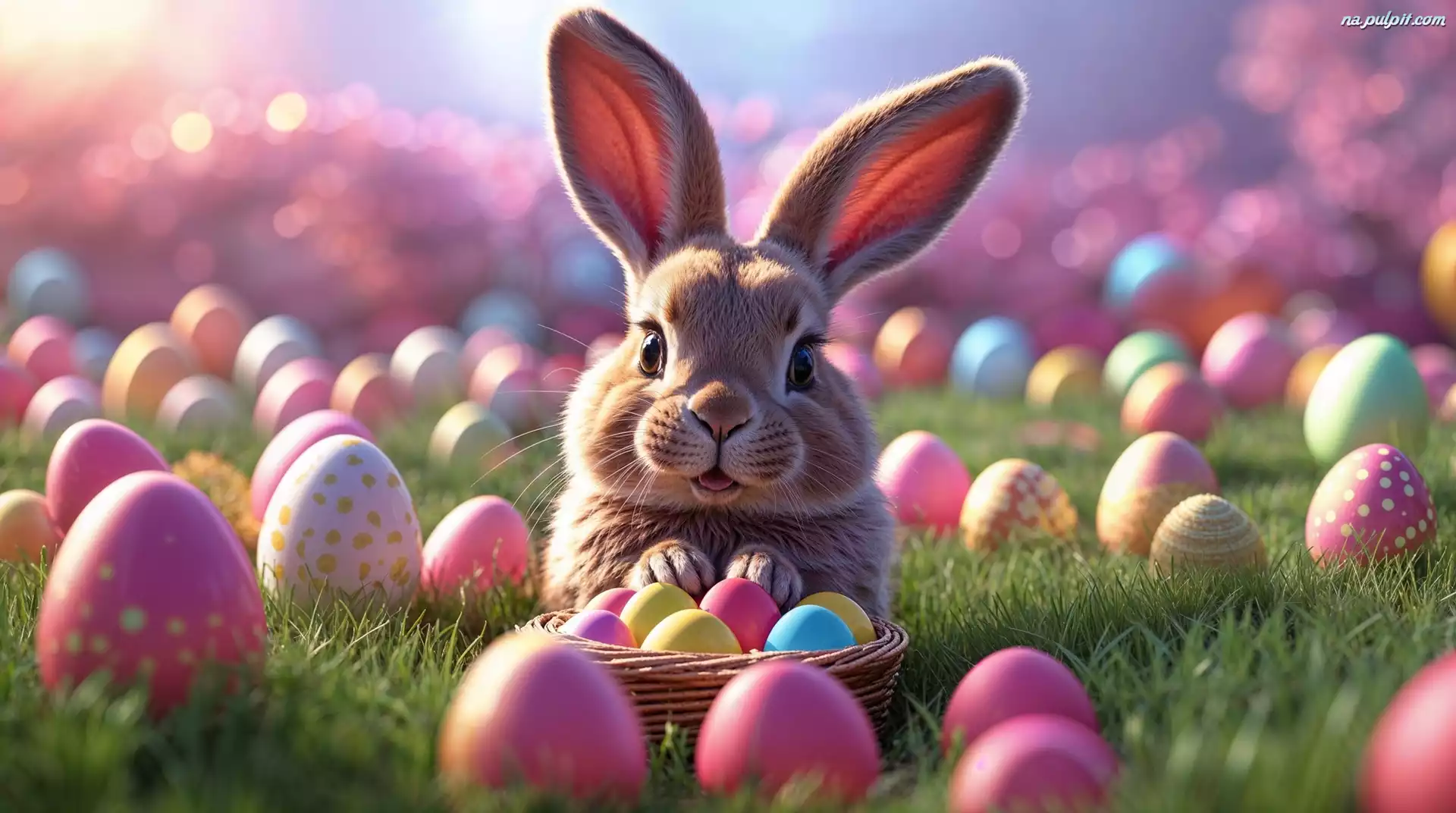 Wielkanoc, Królik, Kolorowe, Grafika, Pisanki Na Pulpit