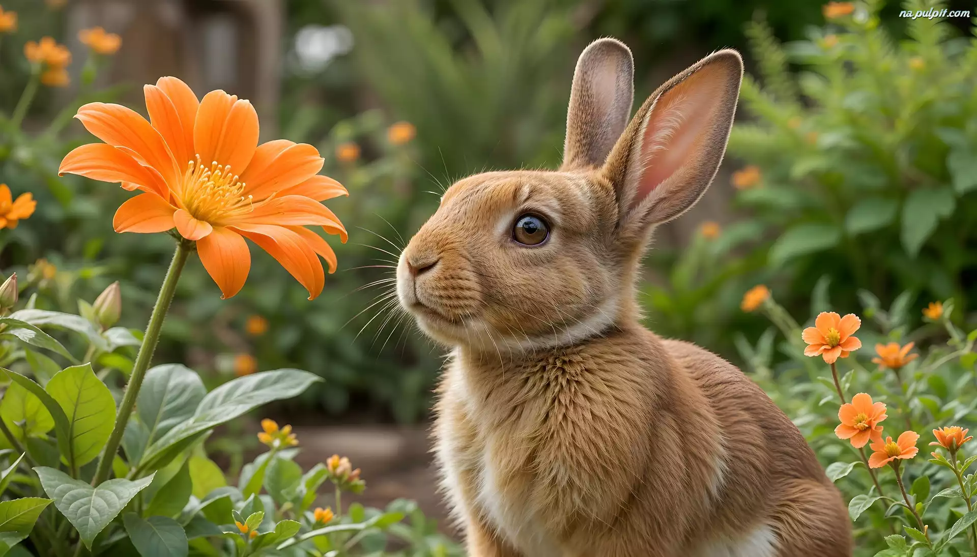 Kwiat, Królik, Kwiaty, AI, Pomarańczowy Na Pulpit