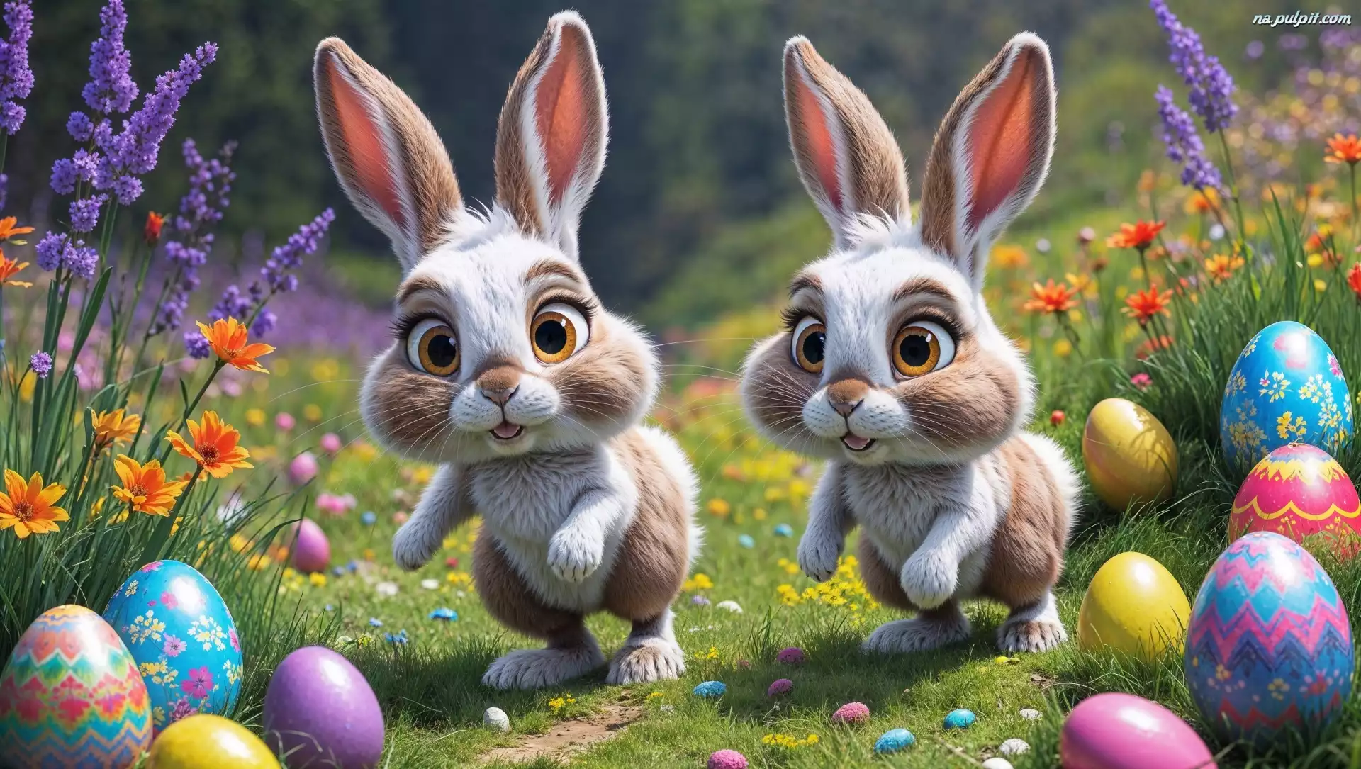 Wielkanoc, Króliki, Pisanki, Grafika, Kwiaty Na Pulpit