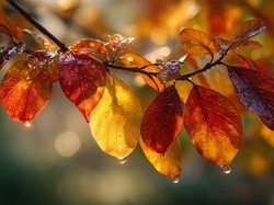 Grafika, Gałązka, Liście, Krople, Jesienne, AI