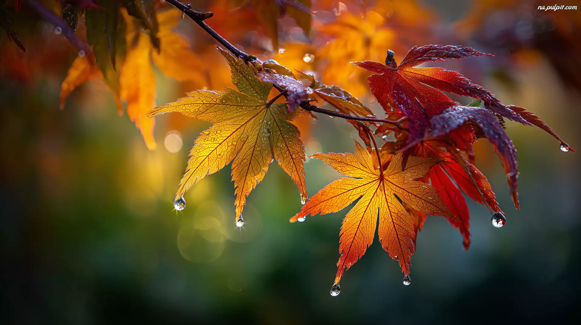 Klon palmowy, Liście, Krople, Grafika AI Na Pulpit