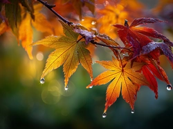 Klon palmowy, Liście, Krople, Grafika AI