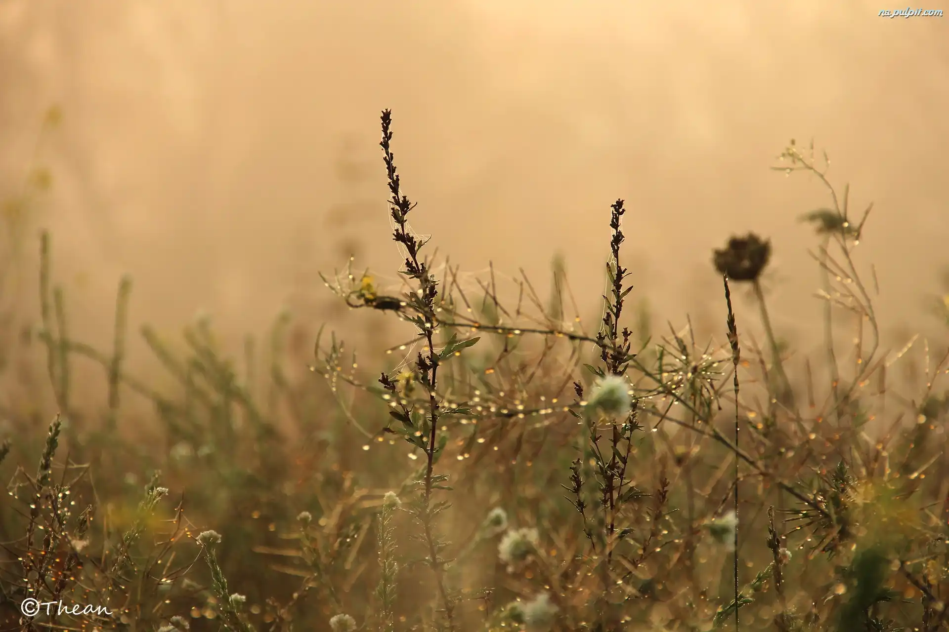 Krople, Mgła, Łąka, Rośliny Na Pulpit