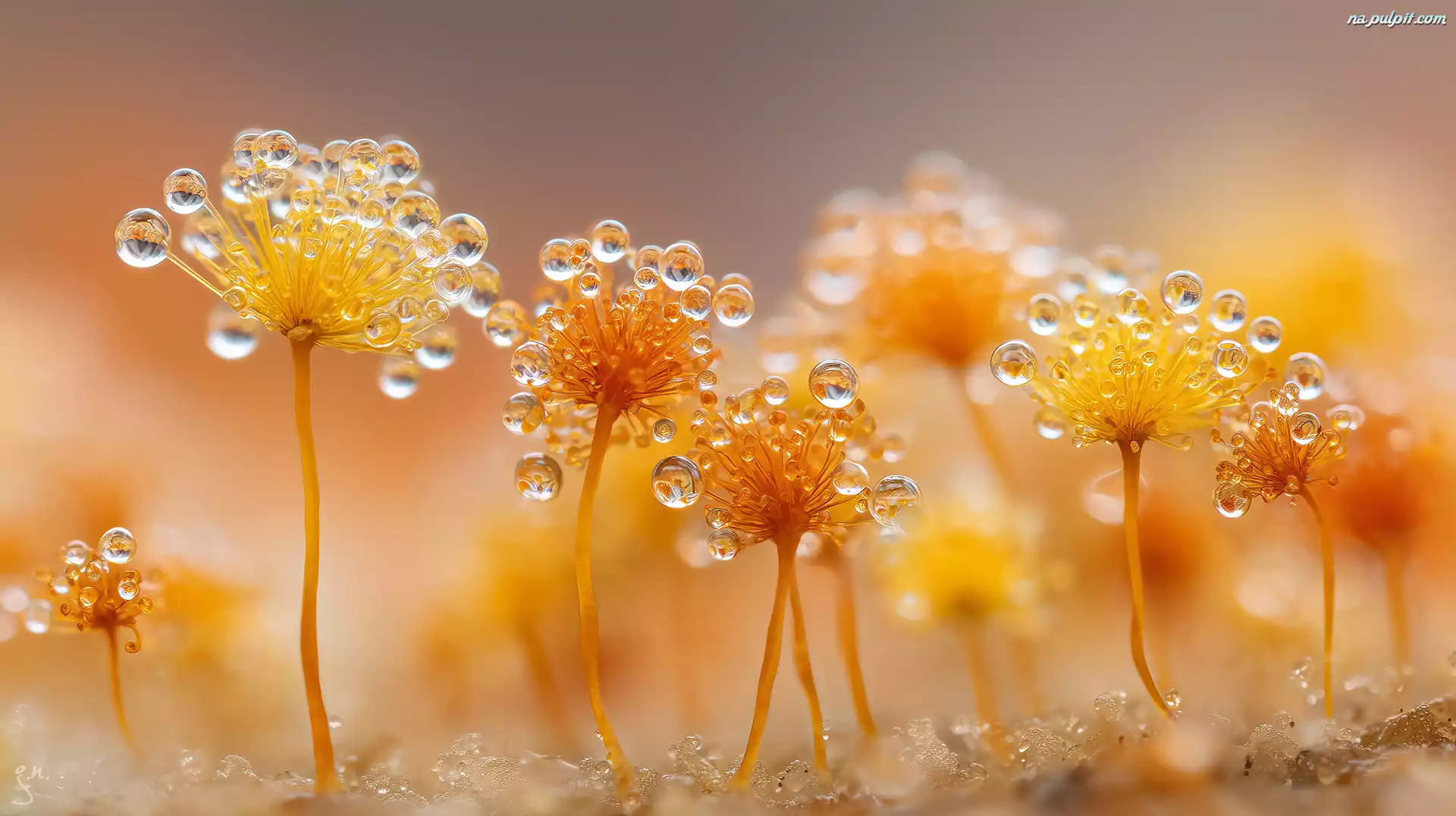 Rosa, Żółte, Grzyby, Krople, Śluzowce, Grafika AI Na Pulpit