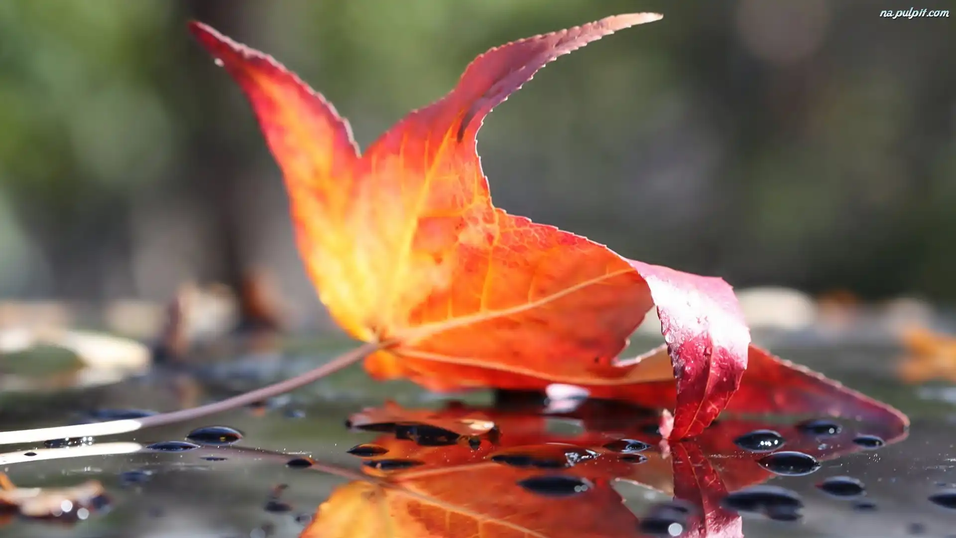 Krople, Liść, Jesień, Deszcz Na Pulpit
