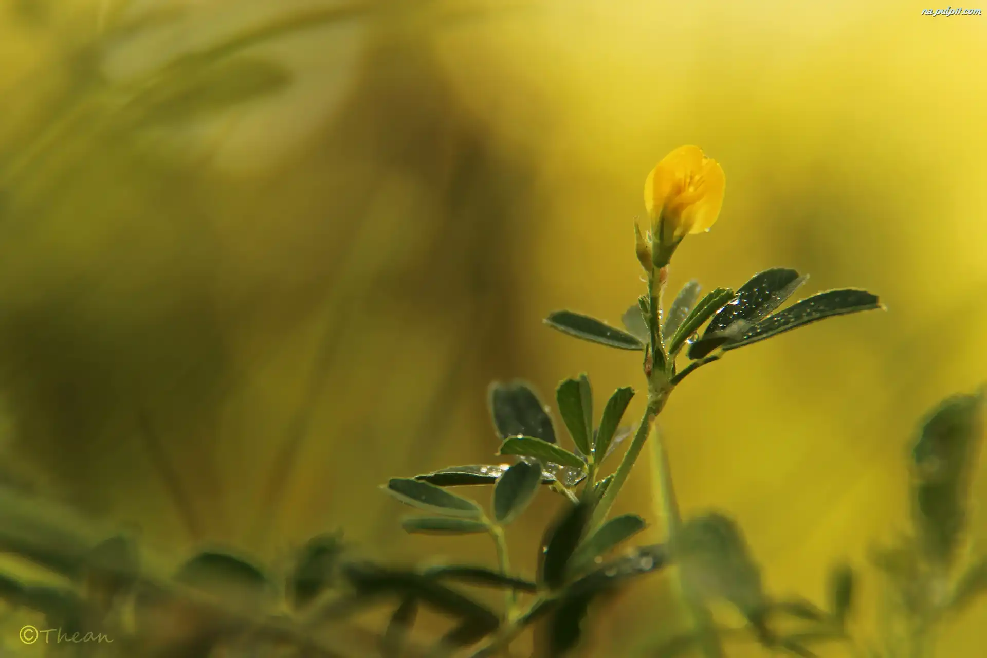 Krople, Kwiatek, Mały, Żółty Na Pulpit