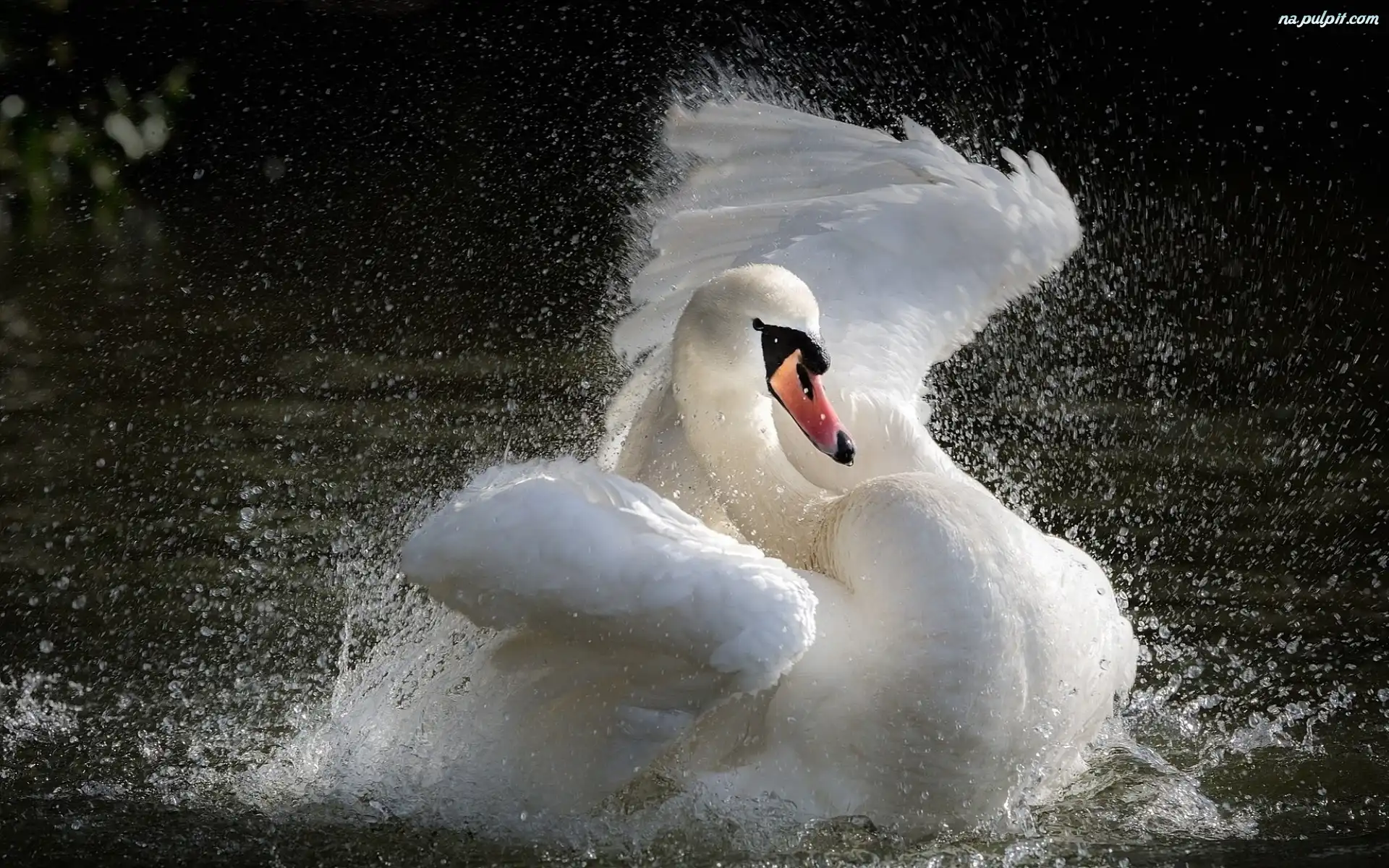 Krople, Łabędź, Ptak, Woda Na Pulpit