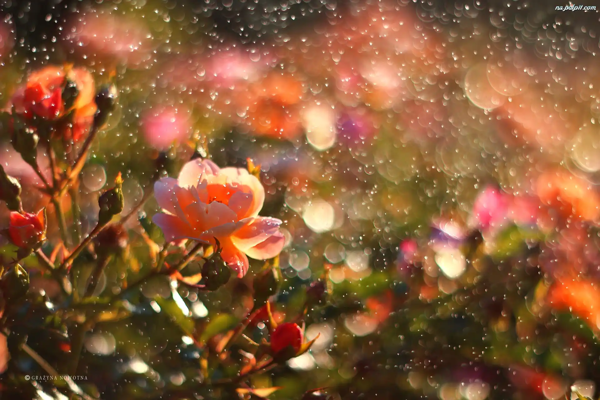 Krople, Kwiaty, Róże, Deszcz Na Pulpit