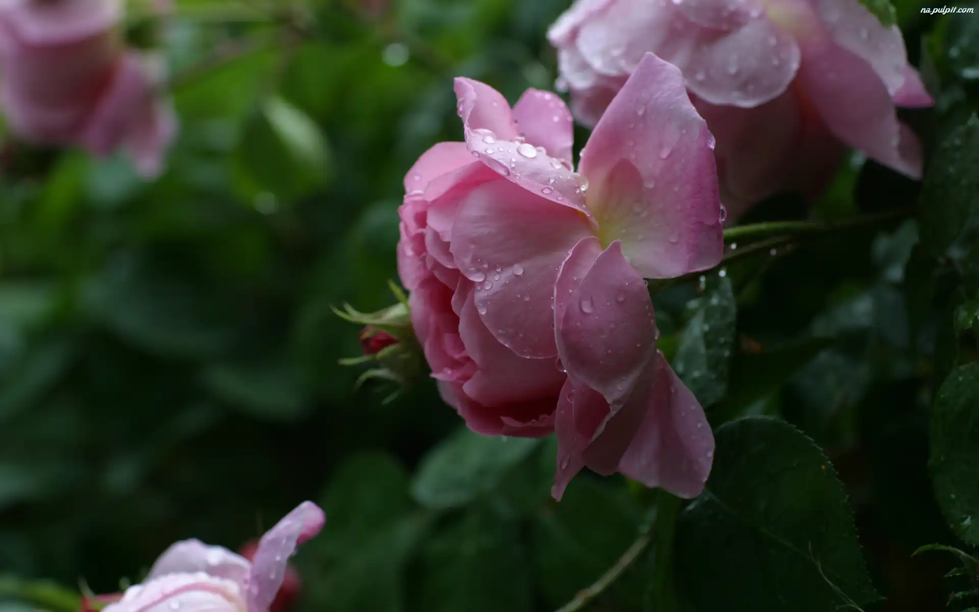 Krople, Róże, Różowe, Rosa Na Pulpit