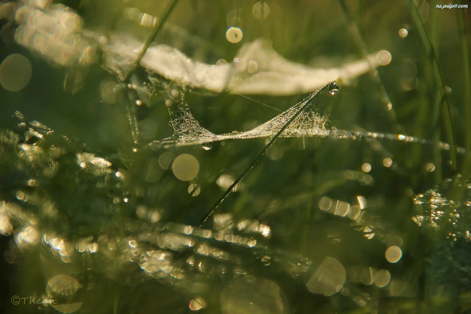 Krople, Bokeh, Trawa, Pajęczyna Na Pulpit