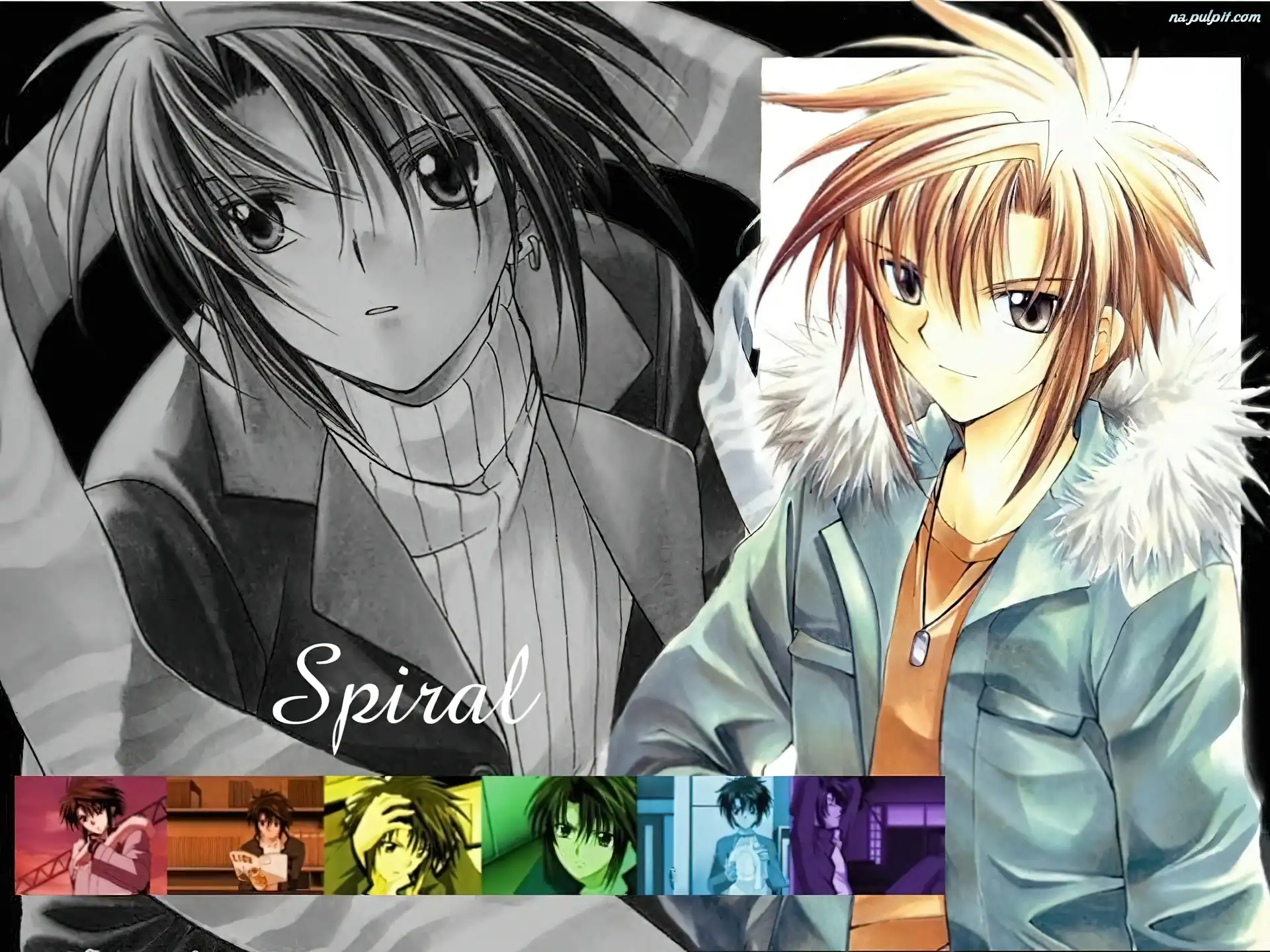 czerwona kamizelka, Spiral, Ayumu ciemna kurtka, Spiral, jasne włosy pistolet, Spiral, chłopiec krzyżyk, Spiral, jasne włosy brązowe oczy, Spiral, ciemne włosy pistolet, Spiral, czerwony płaszcz niebieska kurtka, Spiral, brązowe włosy dziewczyny, Spiral, chłopak krzesło, Spiral, kwiaty Spiral, para czarny płaszcz, Spiral, chłopak Ayumu, Spiral, Hiyono Spiral, kwiaty krótkie włosy, Spiral, twarze