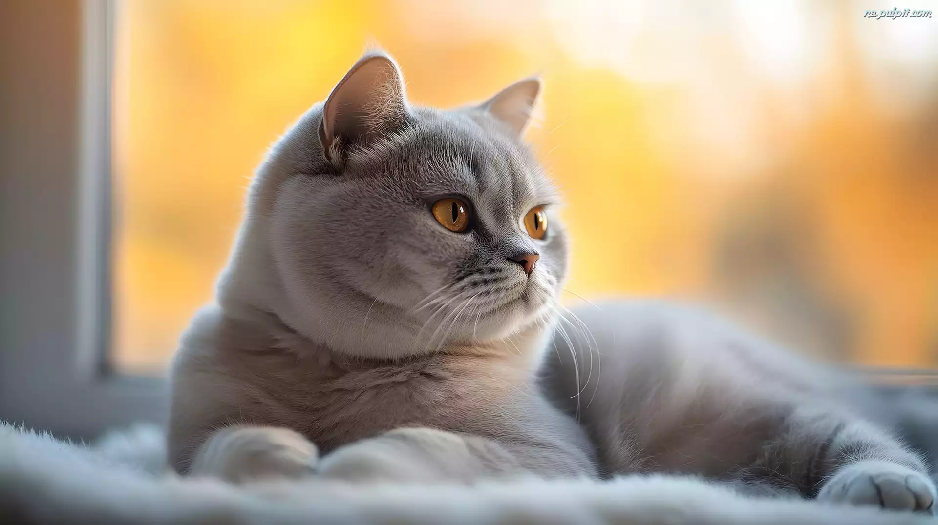 Okno, Kot, Brytyjski krótkowłosy, Grafika, Parapet Na Pulpit