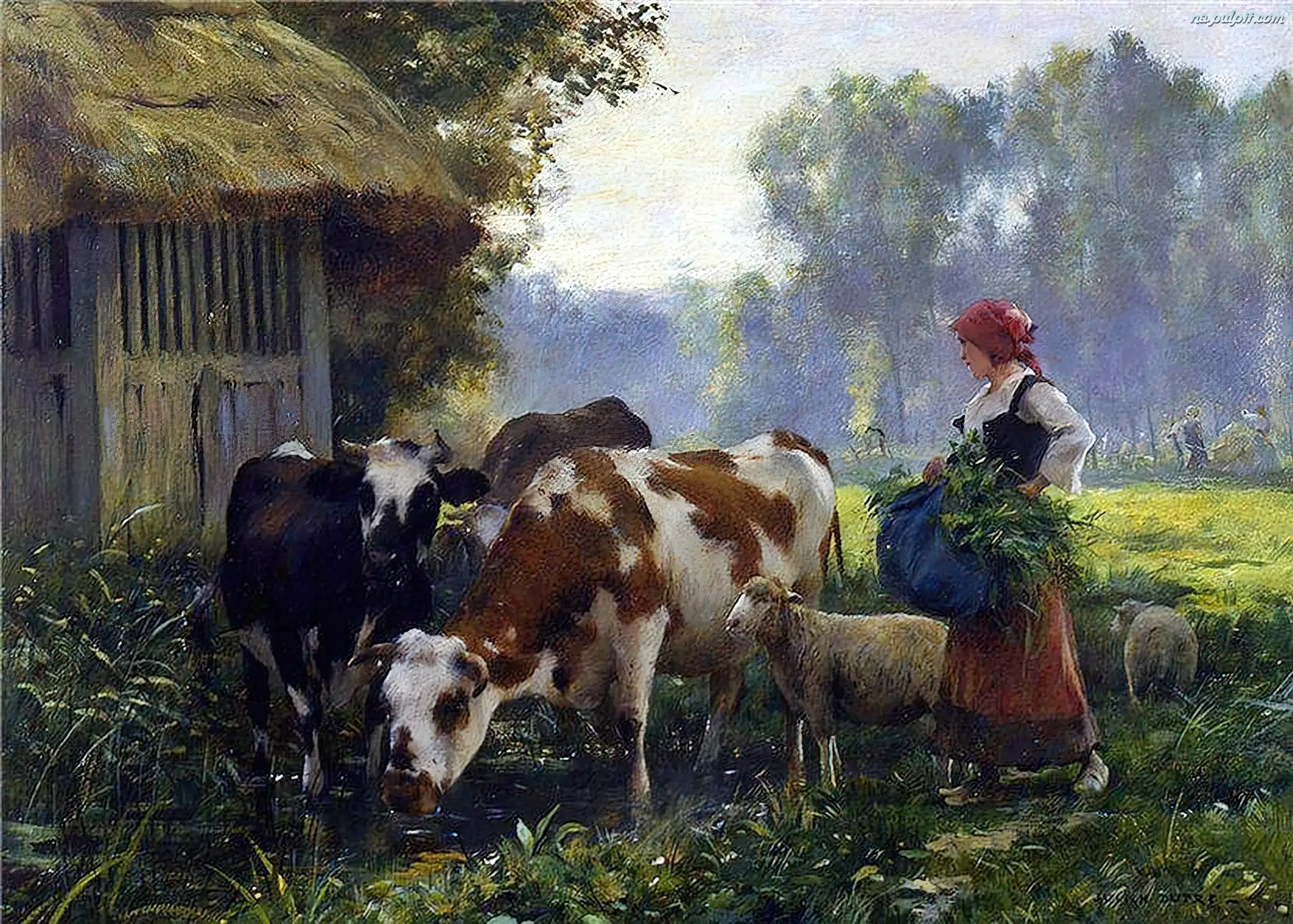 Łąka, Owce, Krowy, Las Na Pulpit