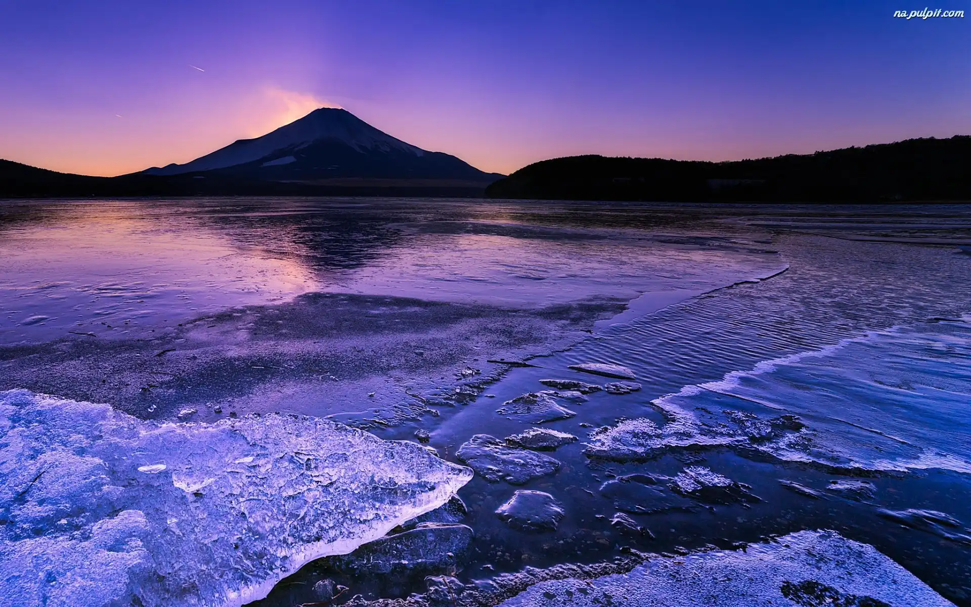 Zima, Kry, Słońca, Góry, Lodowe, Jezioro, Zachód