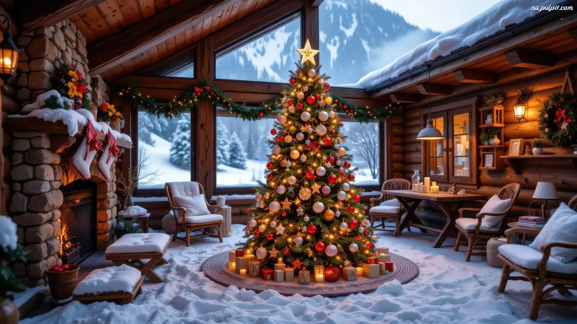 Krzesła, Bombki, Okno, Boże Narodzenie, Al, Zima, Choinka, Kominek Na Pulpit