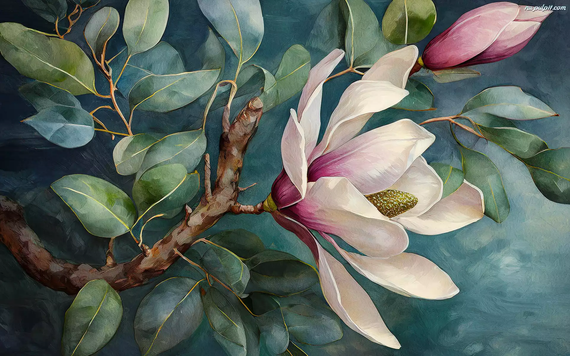 Magnolia, Krzew, Gałązka, Malarstwo, Kwitnąca Na Pulpit