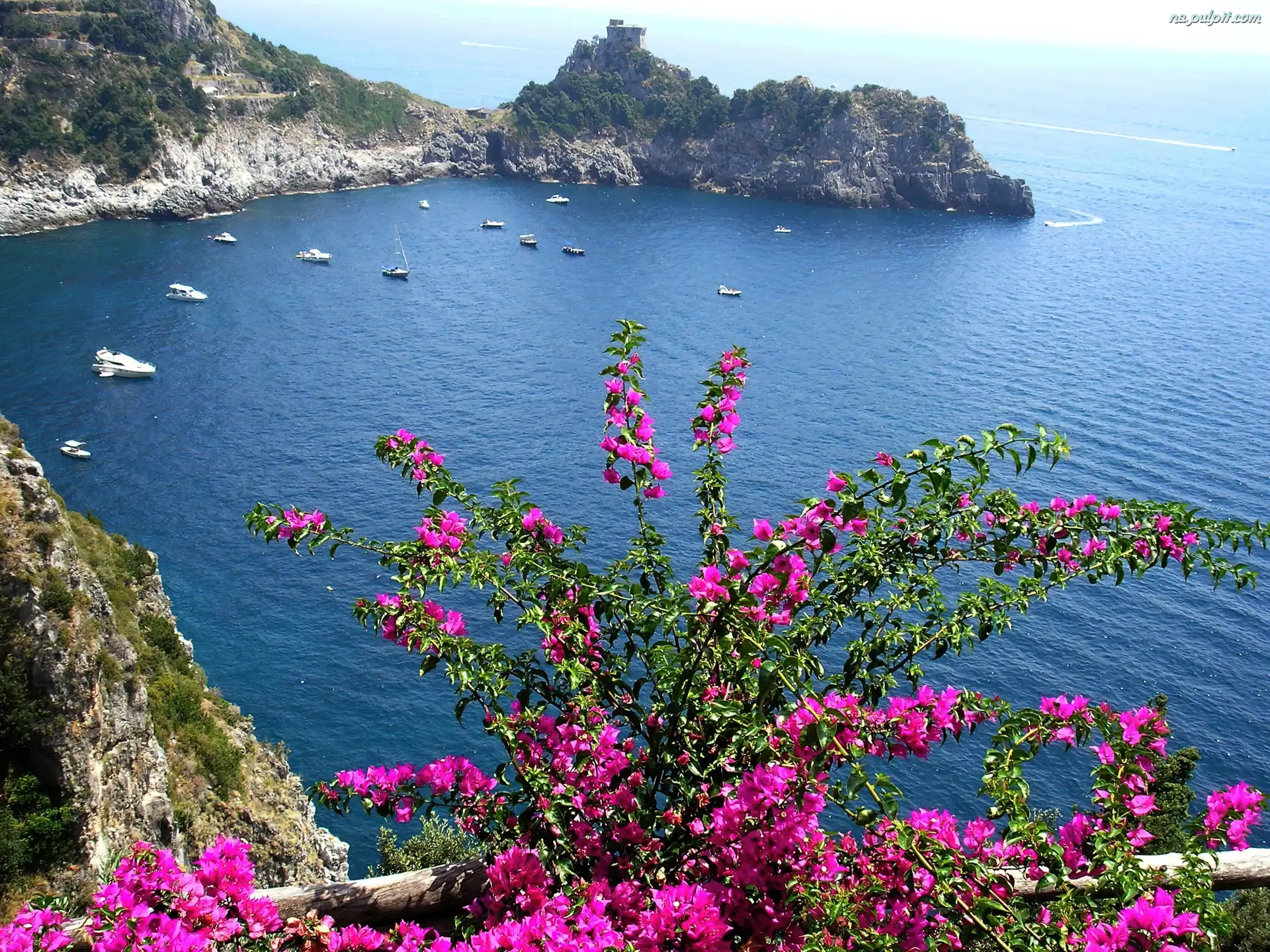 Krzew, Skały, Morze, Kwitnący Na Pulpit