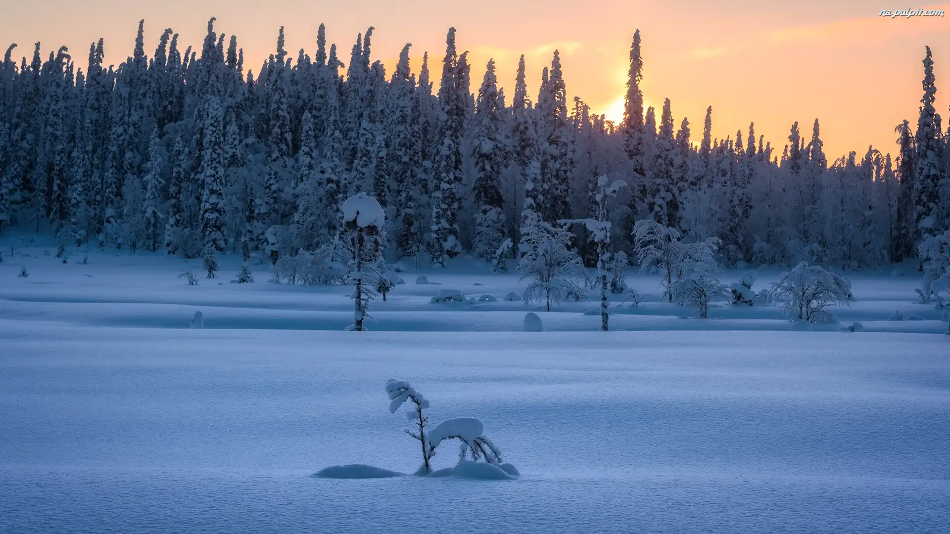 Krzew, Śnieg, Zima, Zachód słońca, Drzewa Na Pulpit