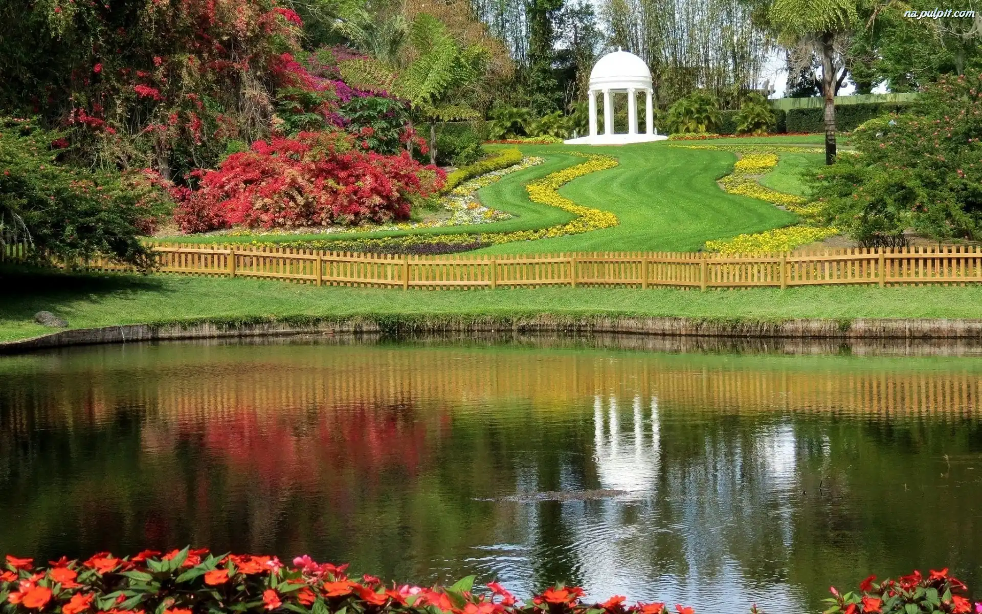 Altanka, Krzewy, Drzewa Staw, Kwiaty, Park, Kwitnące Na Pulpit