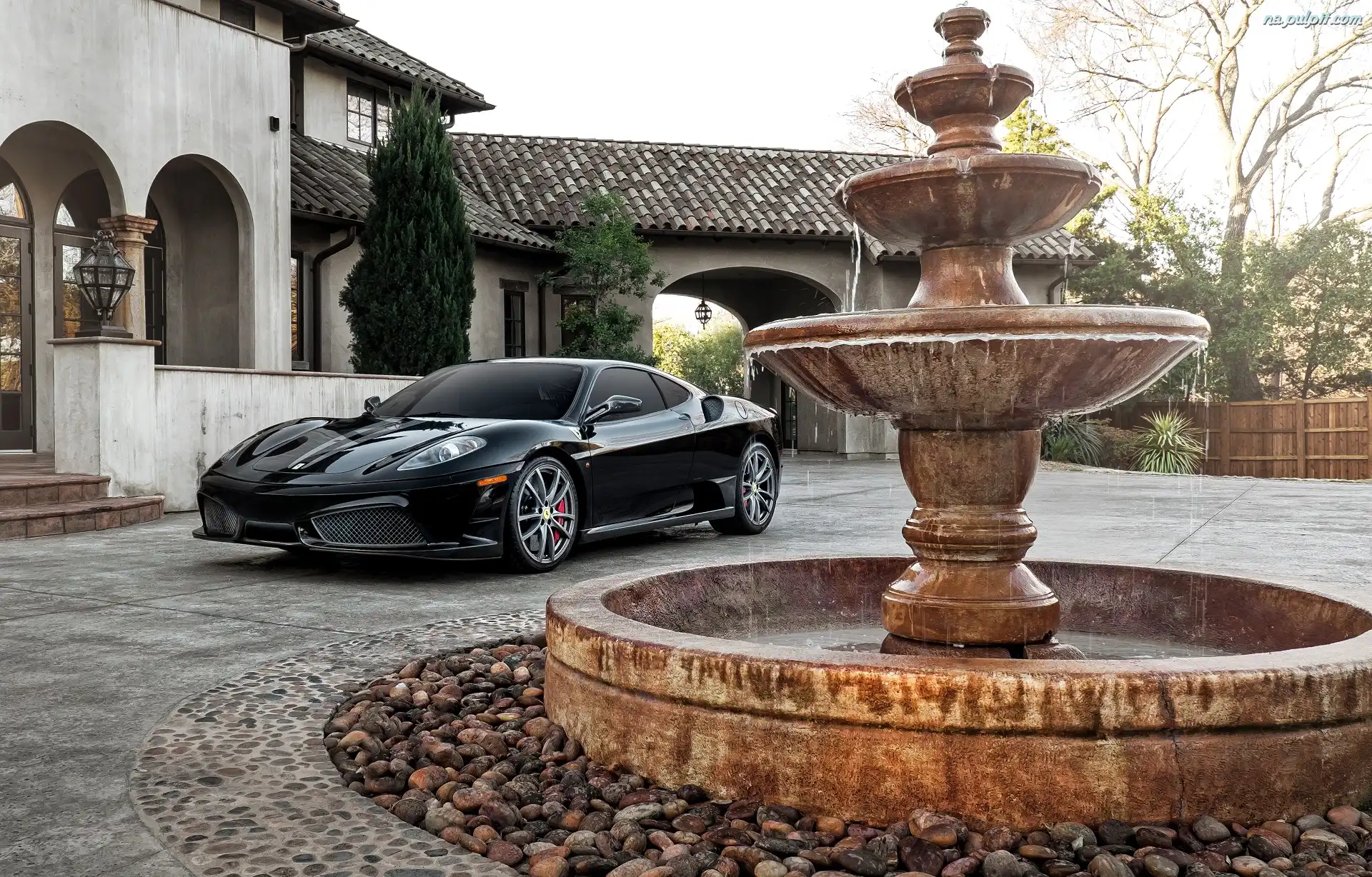 Krzewy, Ferrari F430, Czarne, Dworek, Fontanna Na Pulpit